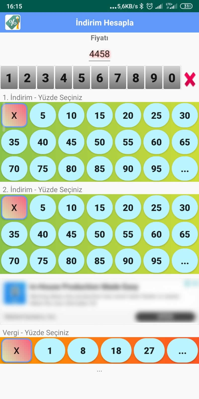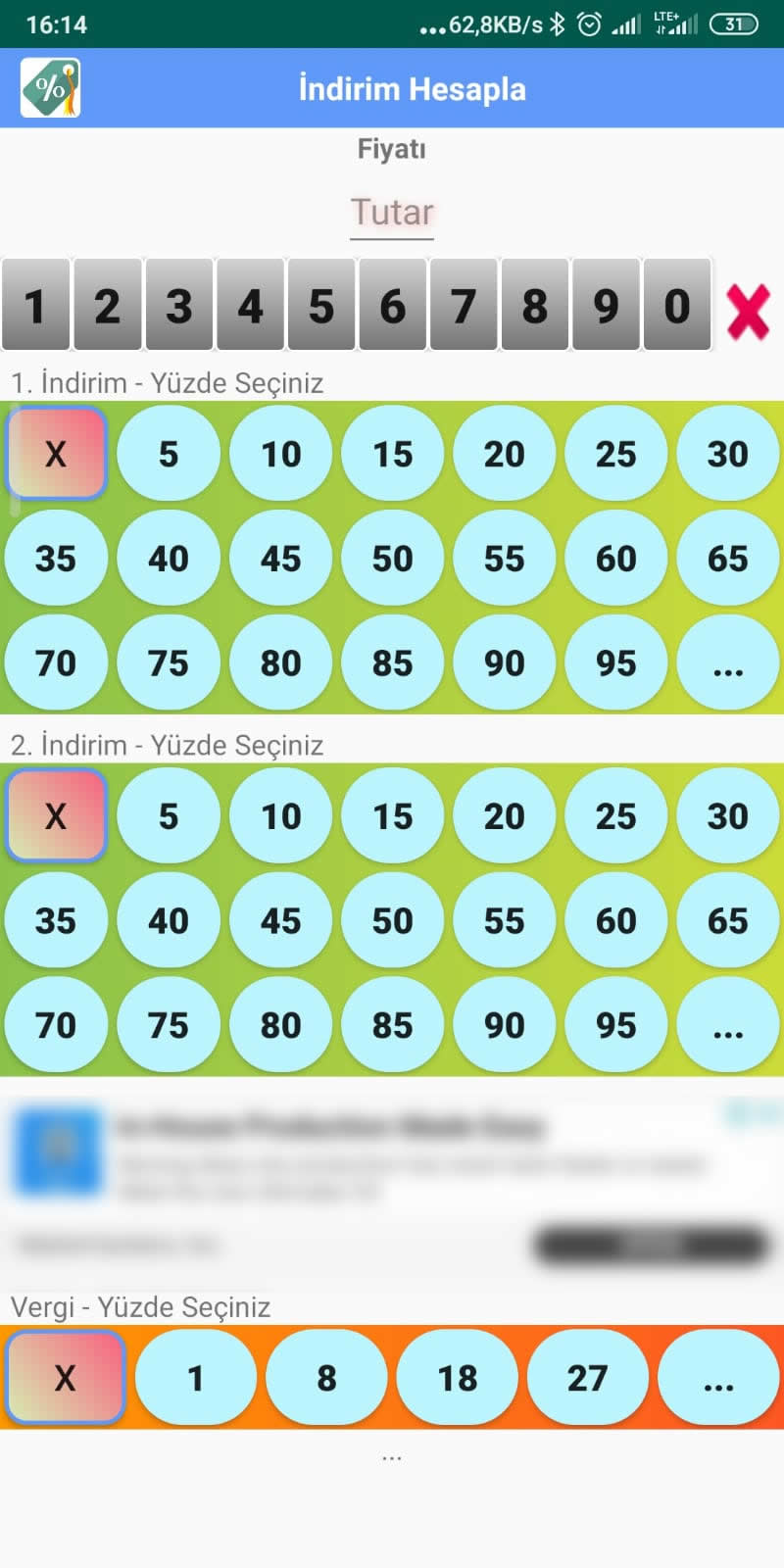 İndirimleri kolayca hesaplar. Tutarı gir ve indirim yüzdelerini seç anında indirim tutarı ve indirimli tutar hesaplanır.