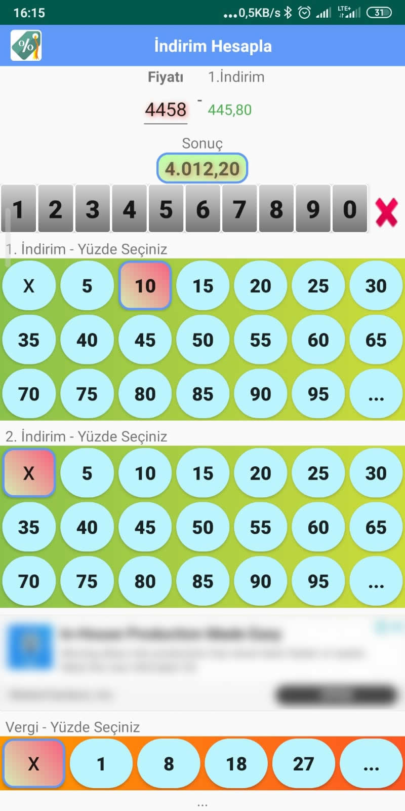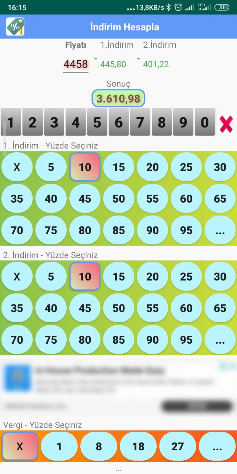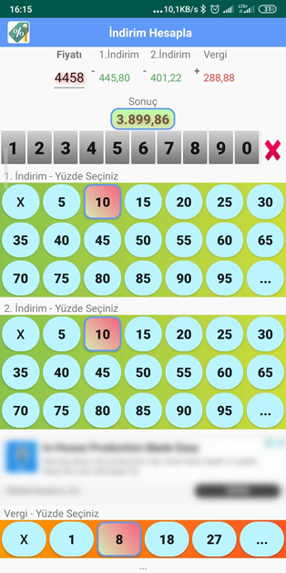 İkinci indirim butonları sayesinde kolayca ikinci indirim miktarı ve indirimli tutarı hesaplarsınız.