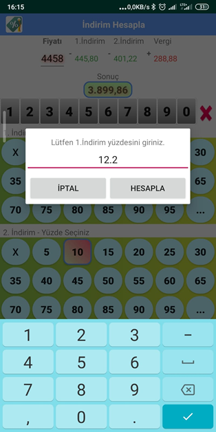 İkinci indirim butonları sayesinde kolayca ikinci indirim miktarı ve indirimli tutarı hesaplarsınız.